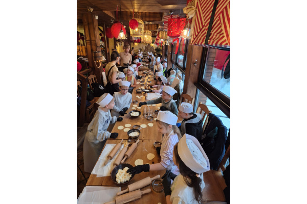 27 listopada klasy pierwsze wybrały się na wyjątkowe warsztaty kulinarne do Pierogarni Stary Młyn. Uczniowie mieli okazję poznać tajniki tradycyjnego lepienia pierogów – od przygotowania ciasta, przez formowanie farszu, aż po nadawanie im kształtu. Z wielkim zaangażowaniem i radością tworzyli własne pierogi, ucząc się cierpliwości i precyzji. Największą atrakcją było jednak wspólne kosztowanie upieczonych przysmaków, które smakowały jeszcze lepiej dzięki własnej pracy.