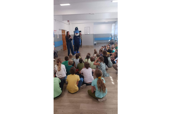 W październiku profilaktyk z Komisariatu Policji Bydgoszcz Wyżyny, Pani Anna Noworyta, w ramach akcji „Bezpieczna droga do szkoły” z Polfinkiem spotkała się z uczniami klas 1-3 oraz przedszkolakami. Celem przedsięwzięcia jest propagowanie właściwych postaw wśród najmłodszych, a także nauka bezpiecznych zachowań podczas korzystania z jezdni. Program uczy nie tylko zasad prawidłowego przechodzenia przez przejście, ale również odpowiedniego poruszania się w pobliżu jezdni, jak i reagowania na sytuacje w ruchu drogowym. Zapraszamy do fotorelacji. Aneta Jordan-Madejska