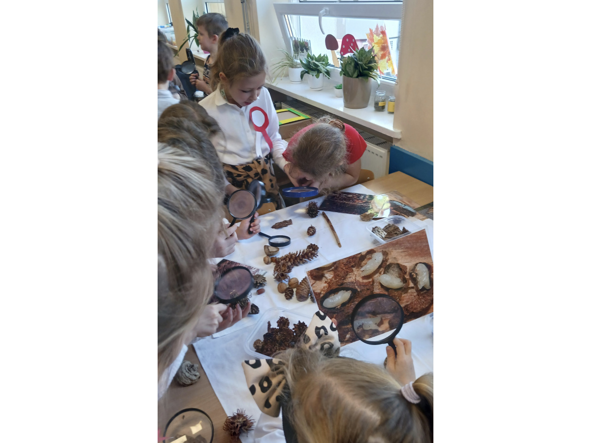 6 listopada klasy pierwsze uczestniczyły w wyjątkowych warsztatach Akademii Małych Rąk, prowadzonych przez panią Anię Radosiewicz. Spotkanie poświęcone było jesieni oraz drzewom w tej porze roku. Uczniowie poznali różnorodne gatunki drzew, ich liście i owoce, a także dowiedzieli się, jak zmienia się przyroda wraz z nadejściem chłodniejszych dni. Warsztaty miały charakter praktyczny – dzieci obserwowały barwy jesieni, wykonywały prace plastyczne inspirowane naturą i uczyły się rozpoznawać drzewa po ich charakterystycznych cechach. Zajęcia rozwijały ciekawość świata, wrażliwość na piękno przyrody oraz umiejętność współpracy w grupie