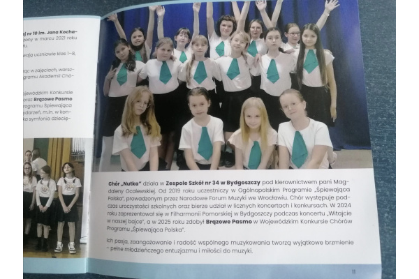 Chór Szkolny "Nutka" włączył się w obchody Roku Muzyki w Bydgoszczy, uczestnicząc wraz z innymi chórami w projekcie "Bydgoski Rok Muzyki 2025 w Trzech Aktach". Efektem przedsięwzięcia było nagranie i wydanie wspólnej płyty "Dziecięce głosy z ośmiu stron Bydgoszczy - takt drugi". Nasz chór nagrał piosenkę pt. "Jesienny deszcz" (muz. Wojciech Kaleta, sł. Stanisław Kraszewski). Słowa wstępu na płycie należą do Pana Prezydenta Miasta Bydgoszczy Rafała Bruskiego. Co ważne, już w najbliższy piątek, 12.12.2025 na bydgoskim jarmarku świątecznym od godz. 16.45 do 17.10 będzie można na żywo usłyszeć nasz chór, który zaprezentuje się bydgoszczanom, wykonując kolędy i piosenki świąteczne. Zapraszamy wszystkich! A na ręce opiekunki chóru, Pani Magdaleny Ocalewskiej składamy serdeczne gratulacje!