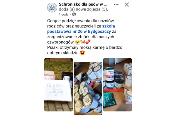 Schronisko dla zwierząt w Pruszczu bardzo dziękuje naszej społeczności za karmę dla piesków. Została ona zakupiona za pieniądze zebrane ze sprzedaży ciast po konkursie na najlepsze dyniowe ciasto. Raz jeszcze dziękujemy wszystkim zaangażowanym w tę piękną inicjatywę. Warto pomagać!