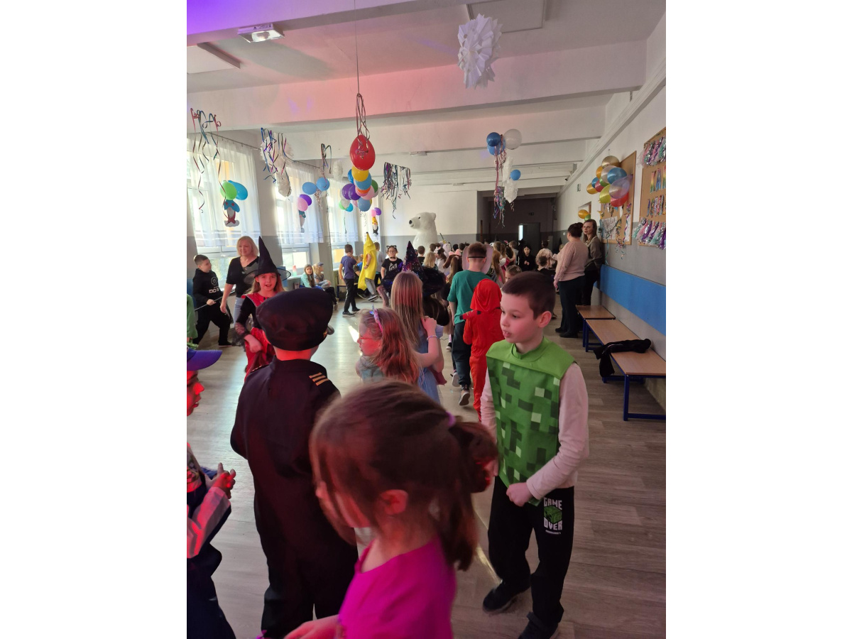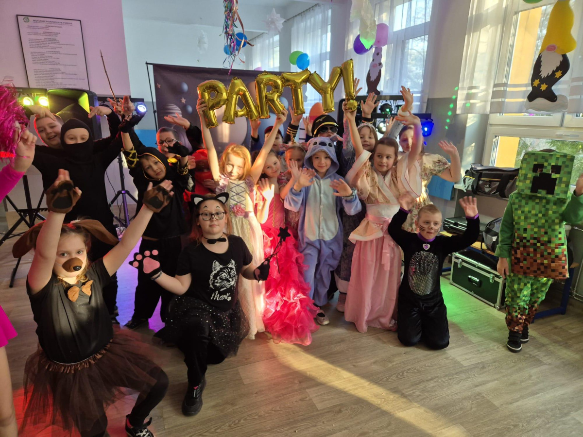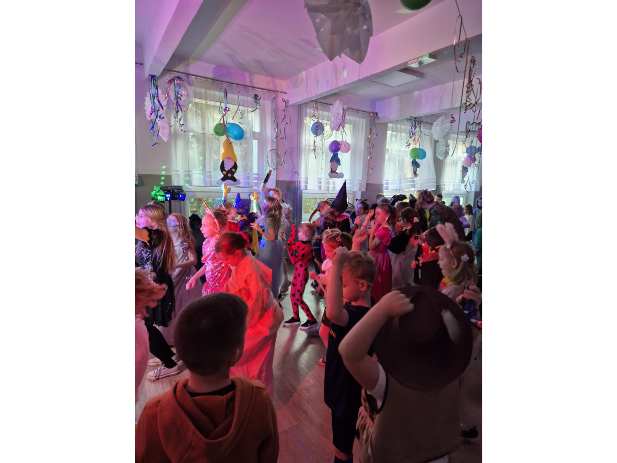 W naszej szkole odbył się radosny bal karnawałowy dla uczniów klas I–III. Tego dnia sala wypełniła się kolorami, muzyką i uśmiechami, a dzieci zachwyciły pomysłowymi i barwnymi przebraniami. Wspólną zabawę poprowadził DJ, który zadbał o taneczną atmosferę i ulubione dziecięce przeboje.