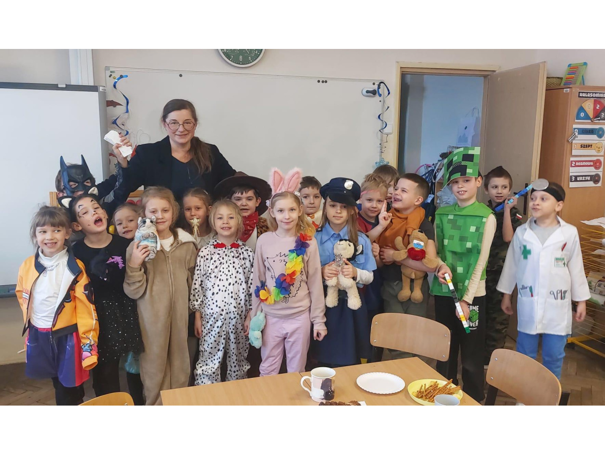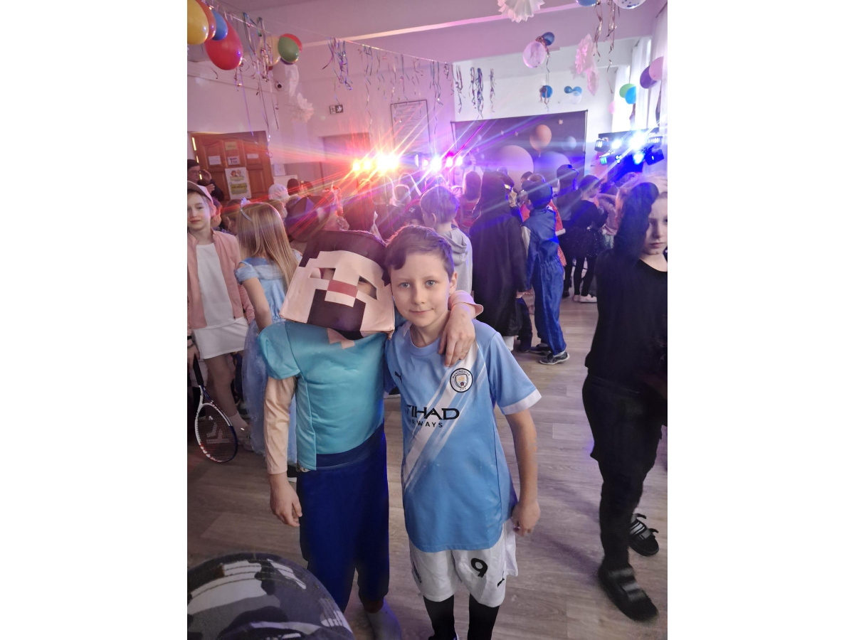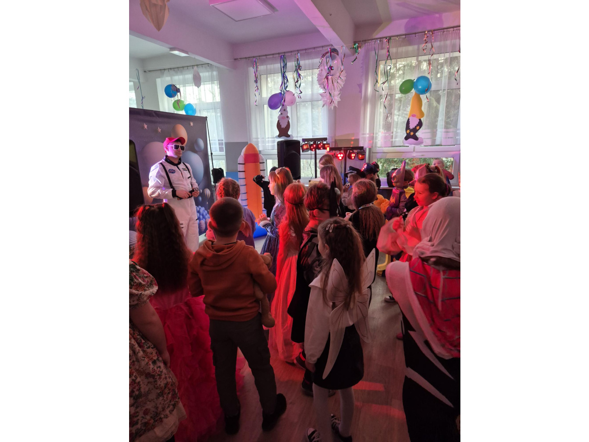 W naszej szkole odbył się radosny bal karnawałowy dla uczniów klas I–III. Tego dnia sala wypełniła się kolorami, muzyką i uśmiechami, a dzieci zachwyciły pomysłowymi i barwnymi przebraniami. Wspólną zabawę poprowadził DJ, który zadbał o taneczną atmosferę i ulubione dziecięce przeboje.