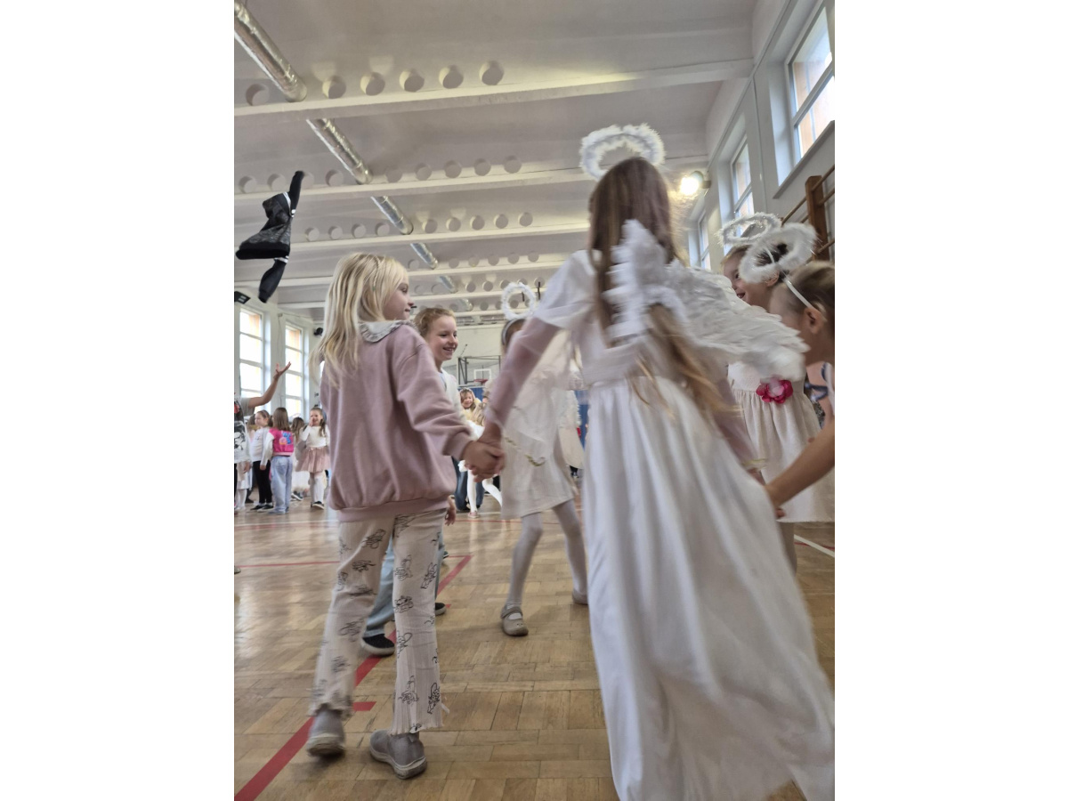W czwartek w naszej szkole odbył się Bal Wszystkich Świętych dla klas I–IV, a w piątek bawili się uczniowie klas V–VIII. To wyjątkowe wydarzenie było nie tylko okazją do wspólnej zabawy, ale także do przypomnienia, że uroczystość Wszystkich Świętych to czas radości i wdzięczności za tych, którzy swoim życiem pokazali, jak kochać Boga i ludzi.