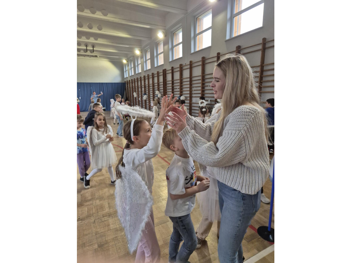 Podczas balu uczniowie wzięli udział w konkursach, wyścigach rzędów oraz radosnej zabawie przy muzyce. Nie zabrakło uśmiechu, wspólnego tańca i pozytywnej energii!