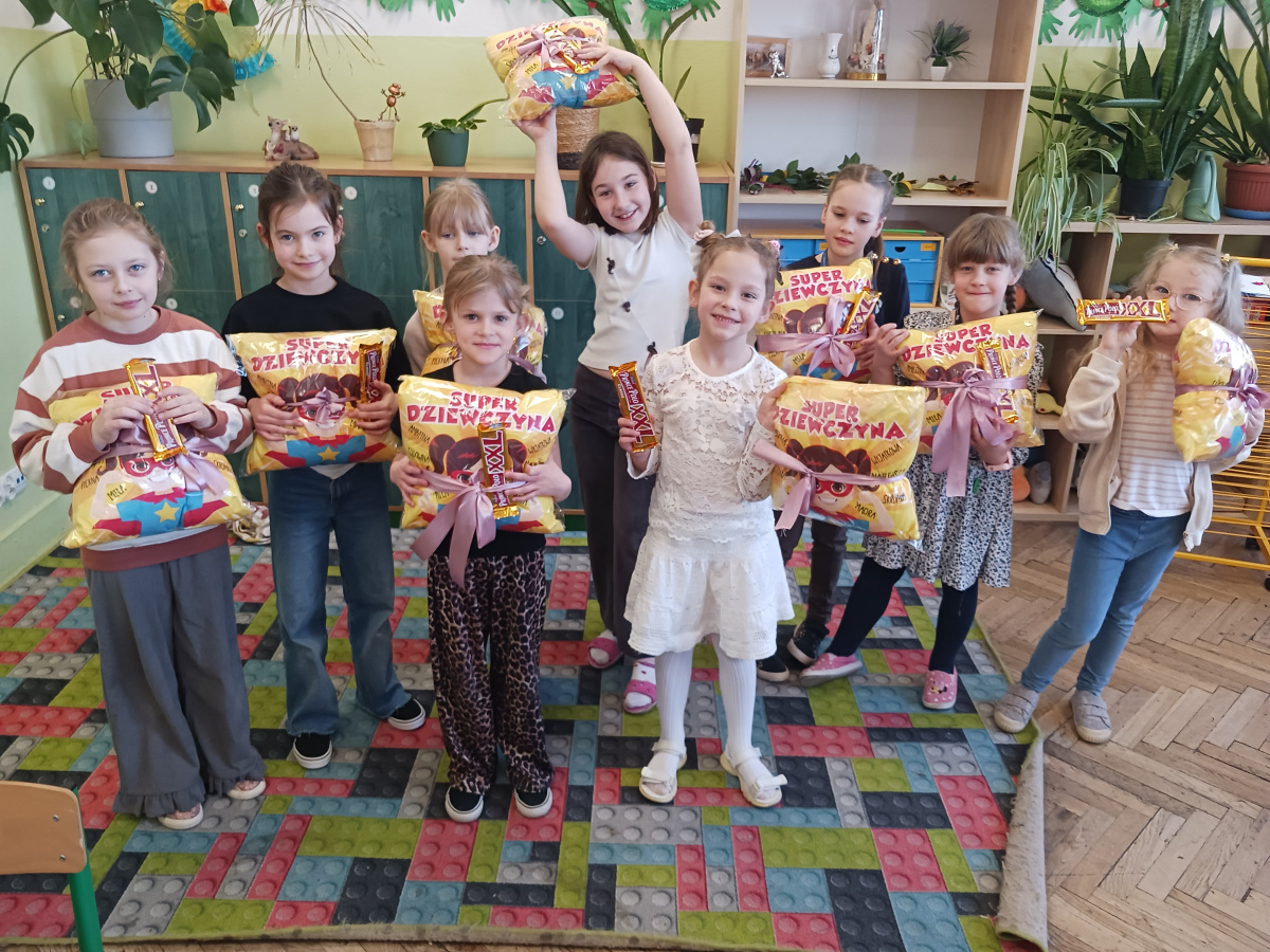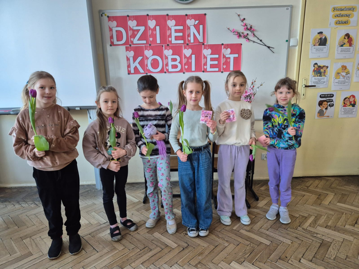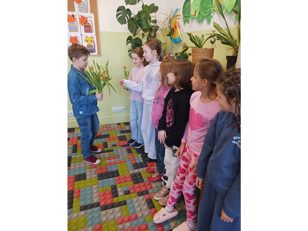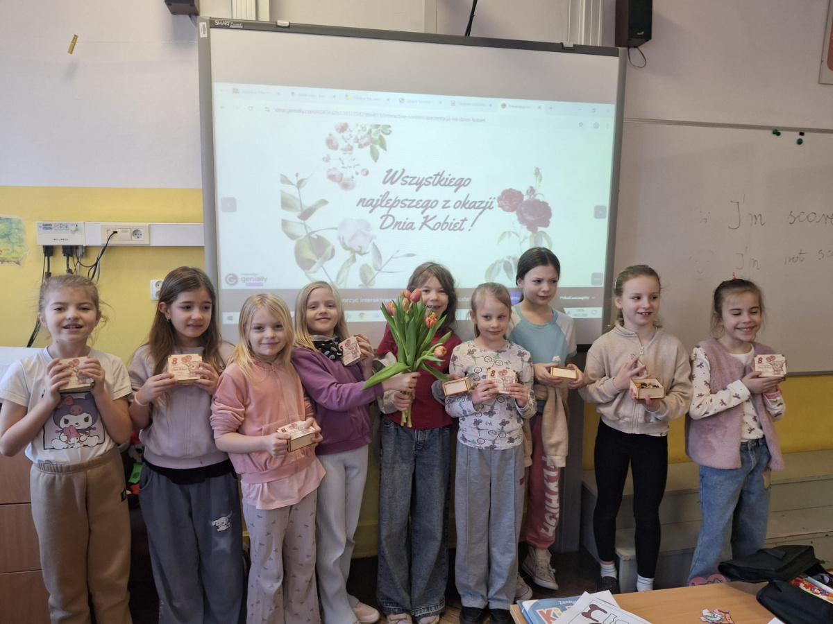 W klasach 1–3 świętowano w piątek Dzień Kobiet, w bardzo radosny sposób. Chłopcy przygotowali dla dziewczynek niespodzianki: kolorowe kwiaty, słodkie upominki i własnoręcznie wykonane laurki. Wszyscy byli podekscytowani, a w klasach panowała wyjątkowo miła atmosfera. Dziewczynki czuły się wyróżnione i z uśmiechem odbierały prezenty. Był to dzień pełen życzliwości, dobrych słów i wspólnej zabawy. Dzięki takim chwilom uczniowie uczą się okazywania szacunku i budowania przyjaznych relacji.