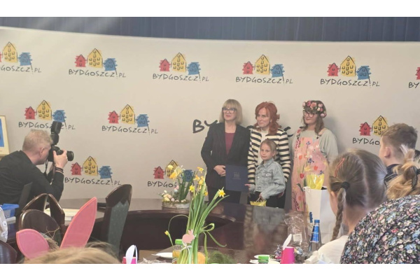 Serdeczne gratulacje dla Neli Leihs z klasy 2a za wyróżnioną pracę w konkursie "Bydgoska Kartka Wielkanocna". Uczennica odebrała nagrodę oraz dyplom na spotkaniu z Prezydentem Miasta Bydgoszczy i Przewodniczącą Rady Miasta Bydgoszczy. Nela miała możliwość uczestniczenia w warsztatach kreatywnych, które zaplanowano w ramach spotkania. Życzymy dalszych sukcesów!