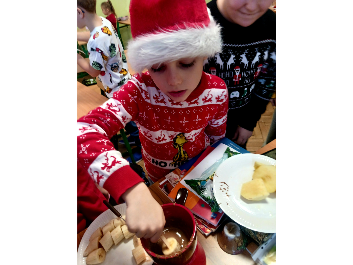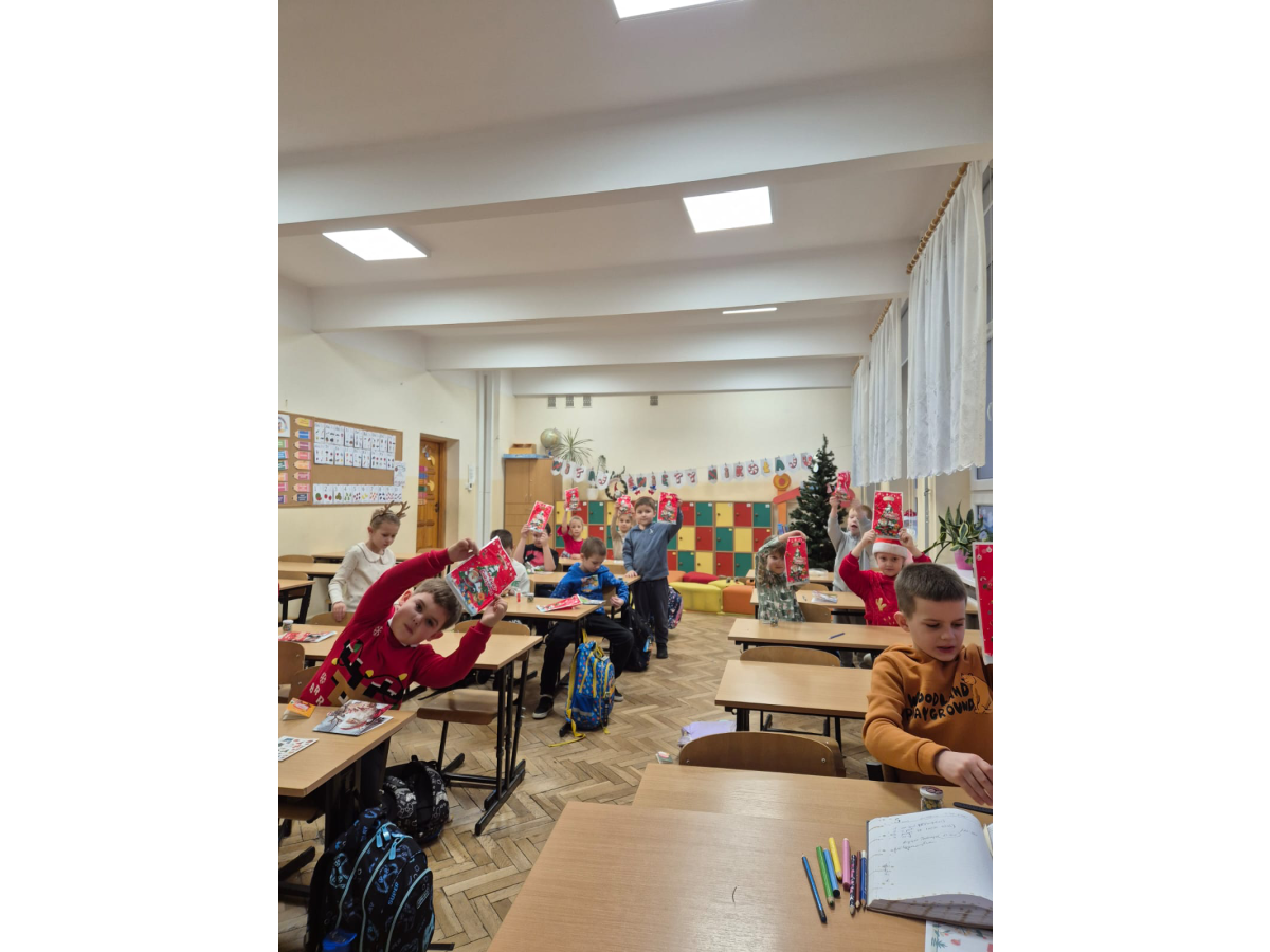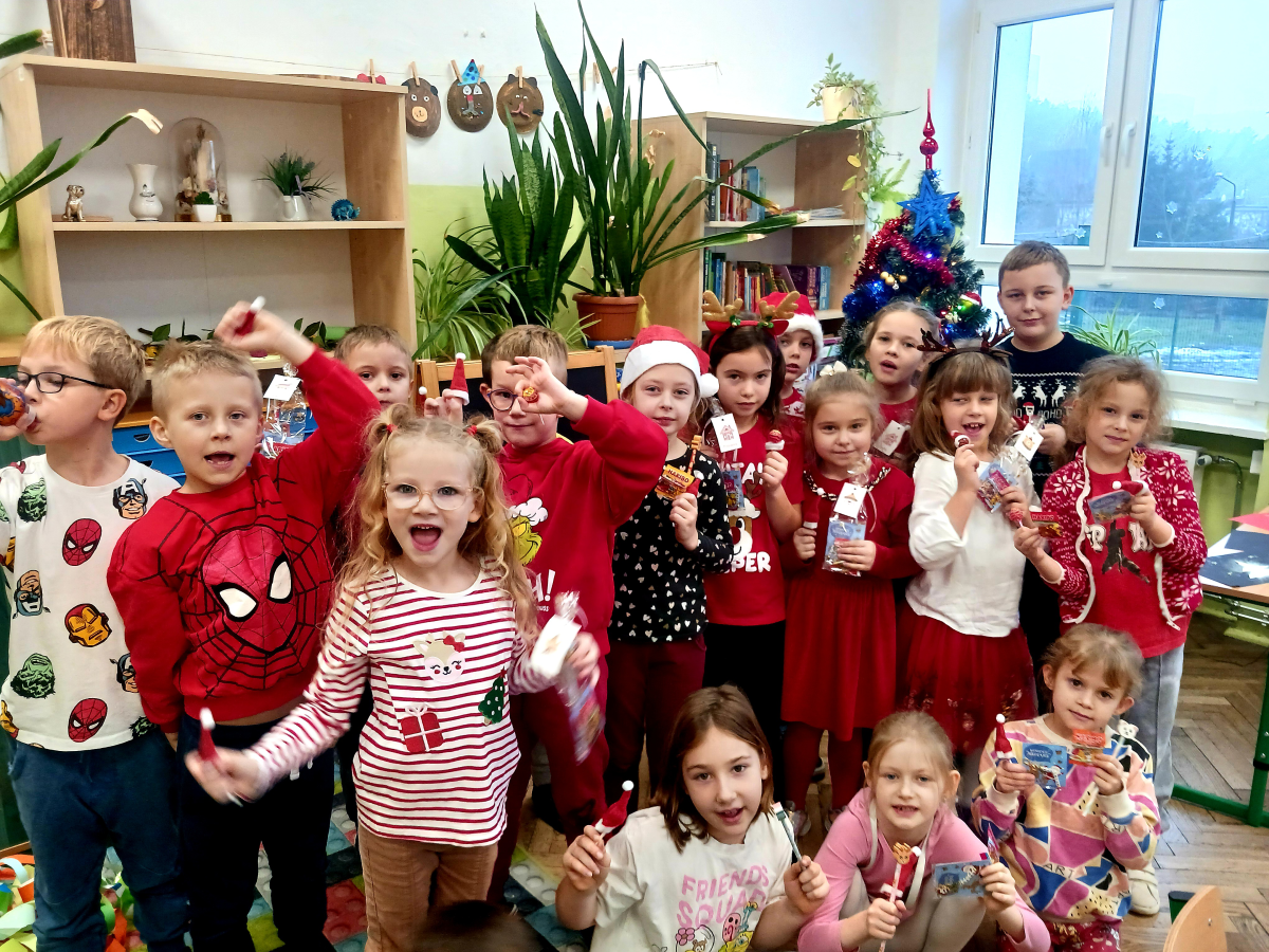 W naszej szkole Mikołajki w klasach 1-3 były pełne radości i niespodzianek. Dzieci z niecierpliwością czekały na prezenty, które wywołały uśmiechy na ich twarzach. W salach rozbrzmiewał śmiech podczas zabaw i konkursów, które integrowały uczniów i dawały im mnóstwo frajdy. Nie zabrakło też słodkich smakołyków – popcorn, cukierki i ciasteczka dodawały energii do wspólnej zabawy. Atmosfera była wyjątkowa, pełna magii i ciepła. Mikołajki stały się pięknym początkiem grudniowych przygotowań do Świąt Bożego Narodzenia.