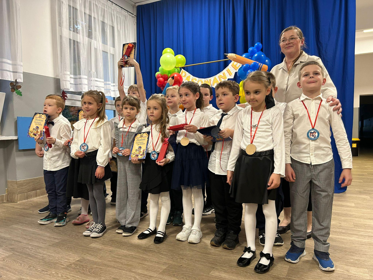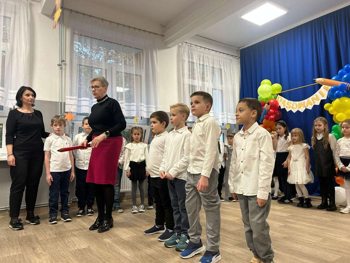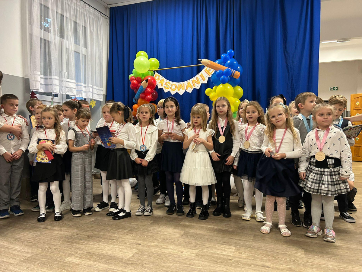 23 października w naszej szkole odbyło się wyjątkowe wydarzenie – pasowanie uczniów klas 1a i 1b. Z dumą aktu pasowania dokonała Pani Dyrektor Anna Thiesler, przyjmując najmłodszych w szeregi społeczności szkolnej. Były emocje, uśmiechy, piękne występy i oczywiście — słodki poczęstunek na zakończenie tej wzruszającej uroczystości. To był dzień, który na długo zostanie w pamięci naszych pierwszoklasistów. Mamy nadzieję, że przeżyją w murach naszej szkoły wiele wspaniałych chwil!