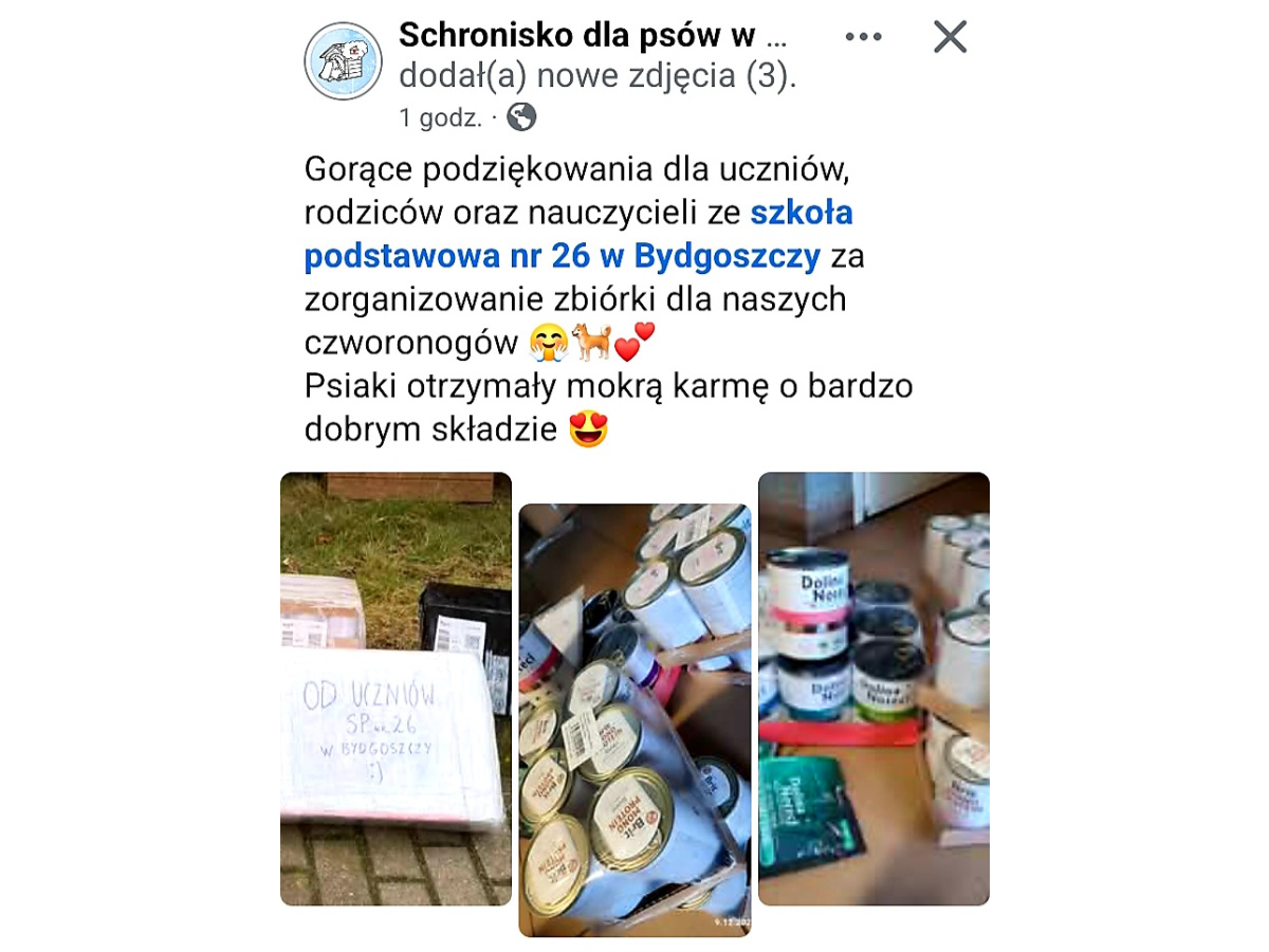 Schronisko dla zwierząt w Pruszczu bardzo dziękuje naszej społeczności za karmę dla piesków. Została ona zakupiona za pieniądze zebrane ze sprzedaży ciast po konkursie na najlepsze dyniowe ciasto. Raz jeszcze dziękujemy wszystkim zaangażowanym w tę piękną inicjatywę. Warto pomagać!