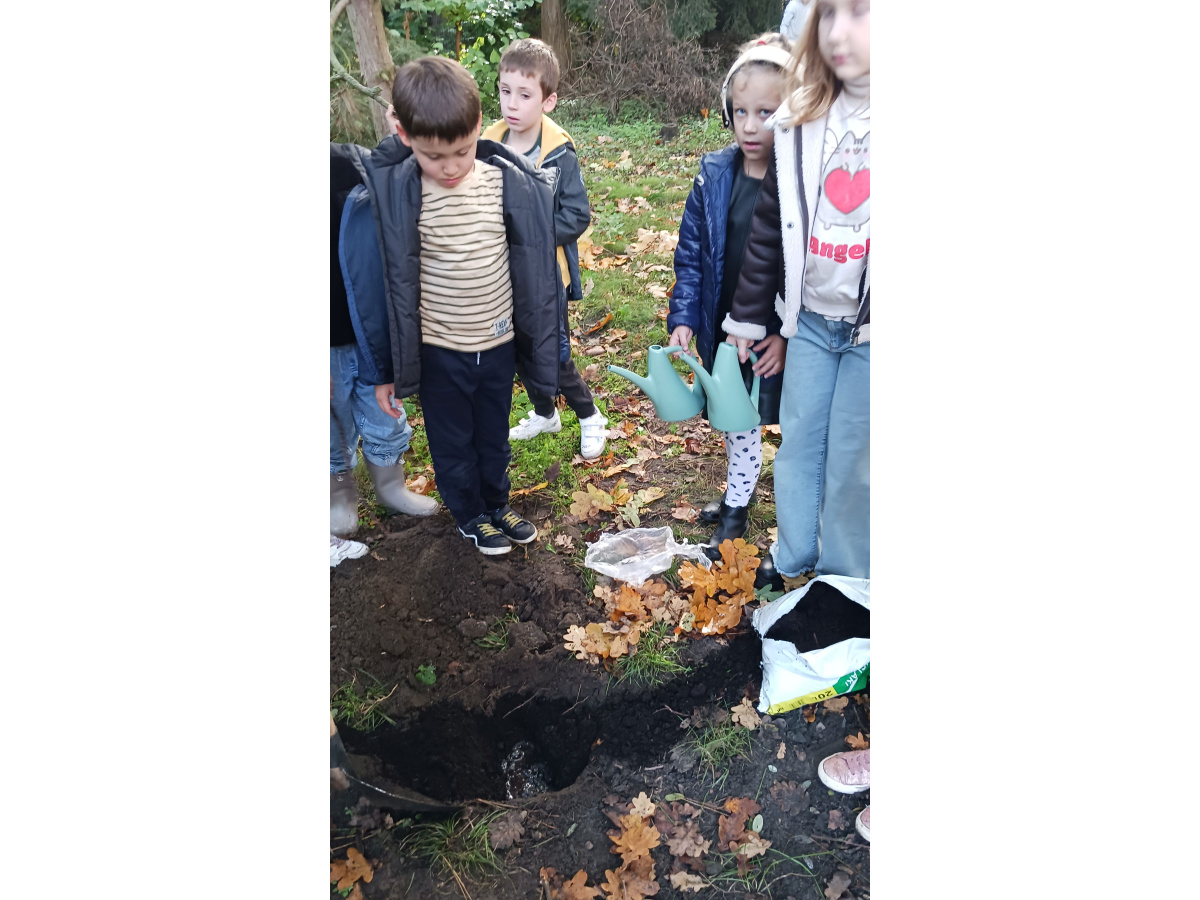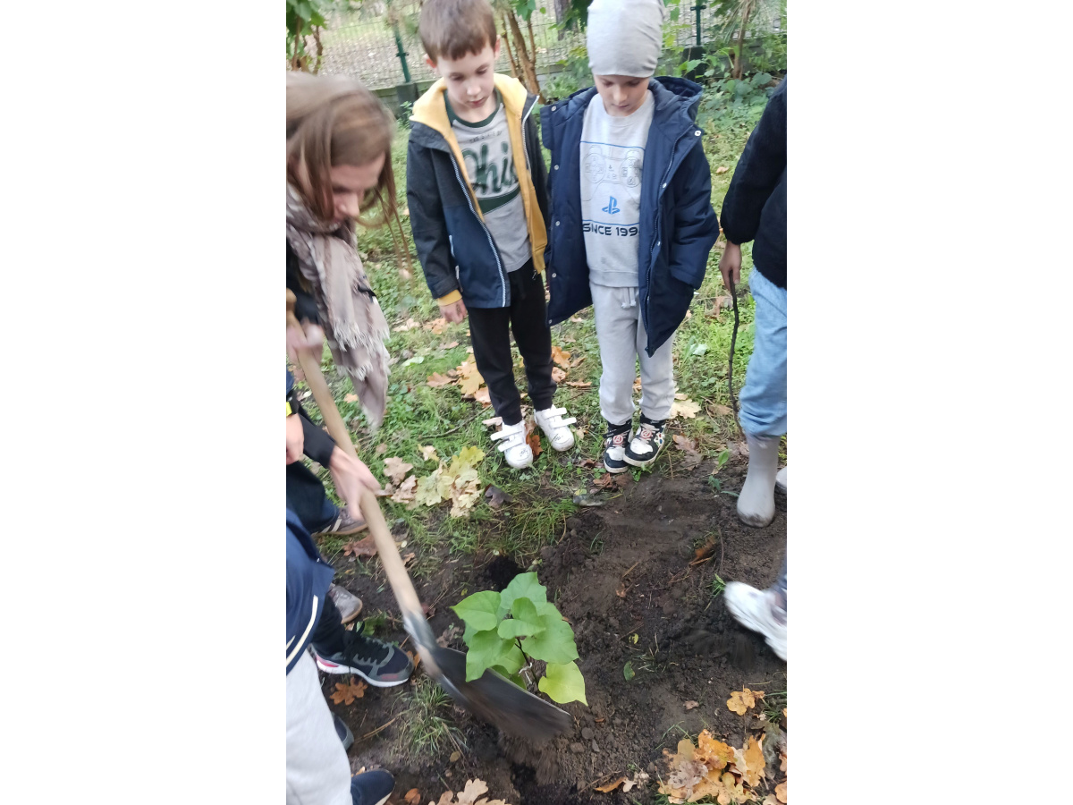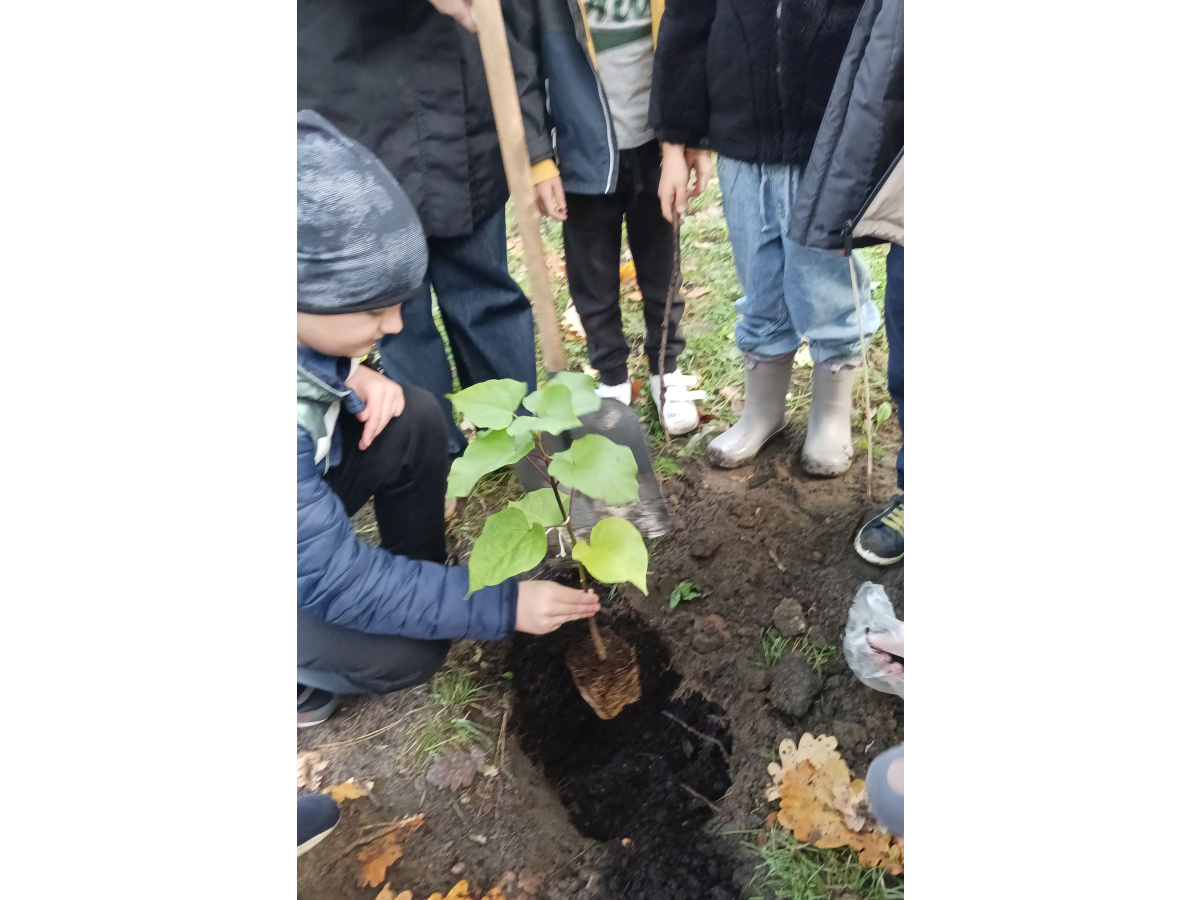 Z okazji Światowego Dnia Drzewa uczniowie, wraz z opiekunkami szkolnej Ligi Ochrony Przyrody, wzięli udział w wyjątkowej akcji sadzenia drzew na terenie szkoły. Wspólnie posadzili dwa drzewa – drzewo tlenowe oraz katalpę, które nie tylko upiększą szkolny krajobraz, ale również przyczynią się do poprawy jakości powietrza. Drzewo tlenowe znane jest z niezwykłej zdolności do pochłaniania dwutlenku węgla i produkcji dużej ilości tlenu, natomiast katalpa zachwyca pięknymi, sercowatymi liśćmi i ozdobnymi kwiatami. Podczas wydarzenia uczniowie dowiedzieli się, jak ważną rolę odgrywają drzewa w ekosystemie, jak wpływają na klimat oraz jak każdy z nas może przyczynić się do ochrony środowiska. Akcja zakończyła się wspólnym zdjęciem i obietnicą regularnej opieki nad nowo posadzonymi drzewami, które będą symbolem troski o naturę i przyszłe pokolenia.