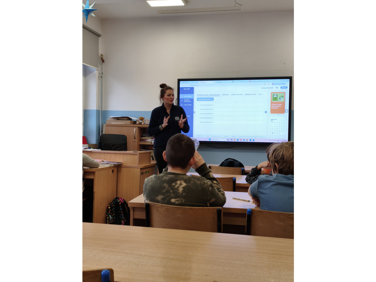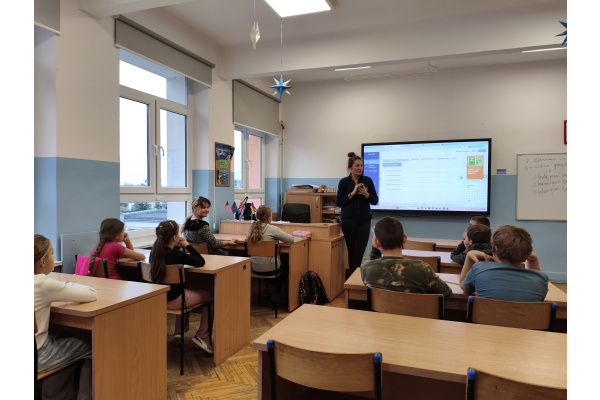 Uczniowie klasy 4 b mieli okazję spotkać się z przedstawicielką Komendy Miejskiej Policji, Panią Anną Noworytą. Pogadanka dotyczyła zjawiska cyberprzemocy i hejtu, profilaktyki tego typu zachowań, a także odpowiedzialności karnej nieletnich. Pani Anna odpowiedziała na wiele pytań uczniów, zachęcając ich do bezpiecznego i odpowiedzialnego korzystania z różnych form komunikacji.