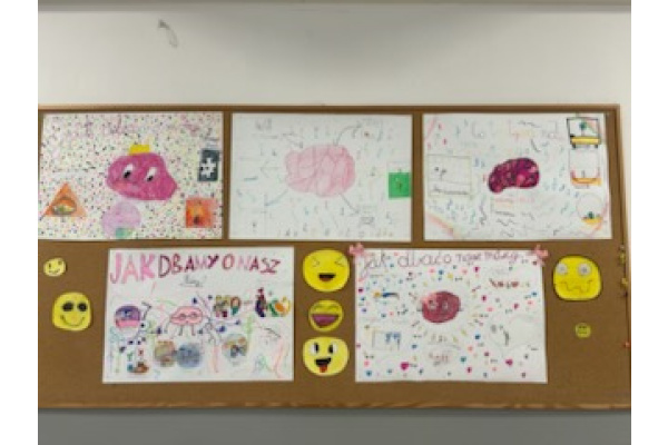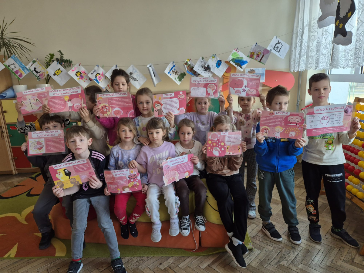W obchody aktywnie włączyły się również klasy I–III. Najmłodsi uczniowie poznawali wpływ zdrowego odżywiania na pracę mózgu oraz uczyli się, jak dbać o jego prawidłowe funkcjonowanie. Dzieci wykazywały się dużą kreatywnością, tworząc własne gry planszowe oraz uczestnicząc w zabawach rozwijających pamięć i twórcze myślenie. Powstały także plakaty pod hasłem „Jak dbać o nasz mózg i co dobrze na niego wpływa?”, które w przystępny sposób prezentowały zdobytą wiedzę. Przez cały tydzień na lekcjach pojawiały się quizy i zagadki, które dodatkowo motywowały uczniów do aktywnego udziału w zajęciach.