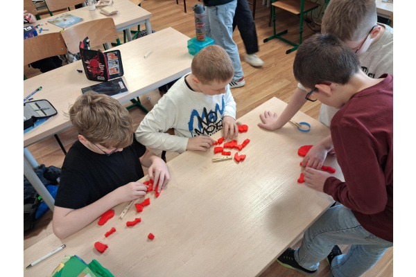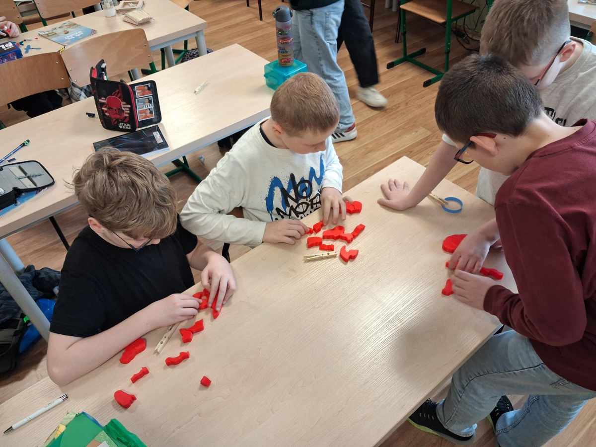 Ważnym przedsięwzięciem było również przygotowanie plakatów pod hasłem „W jaki sposób wykorzystujemy swoje możliwości do nauki”. Prace uczniów ukazywały różnorodne strategie uczenia się oraz sposoby rozwijania potencjału intelektualnego. Szczególnym zainteresowaniem cieszyło się także układanie modelu mózgu z puzzli 3D wykonanych przy użyciu drukarki 3D. Zadanie to wymagało precyzji, współpracy oraz cierpliwości, a jednocześnie pozwalało uczniom lepiej poznać budowę mózgu w sposób praktyczny i angażujący. Wykorzystanie nowoczesnej technologii, jaką jest druk 3D, dodatkowo podniosło atrakcyjność zajęć i umożliwiło uczniom doświadczenie nauki poprzez działanie.