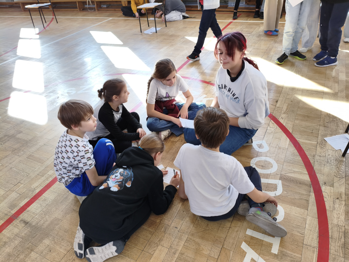 Na lekcjach biologii uczniowie poznawali liczne ciekawostki dotyczące mózgu, jego budowy oraz funkcji. Wiedza ta była uzupełniana poprzez gry i zabawy logiczne skierowane do uczniów klas IV–VIII. Szczególnie interesującą formą aktywności były zajęcia zorganizowane w sali gimnastycznej, gdzie klasy pracowały w grupach, przemieszczając się między różnymi stanowiskami zadaniowymi. Na poszczególnych stanowiskach uczniowie wykonywali zadania logiczne, językowe, psychologiczne oraz ruchowe. Taka forma pracy sprzyjała integracji, rozwijaniu kompetencji społecznych oraz wszechstronnemu angażowaniu różnych obszarów pracy mózgu.