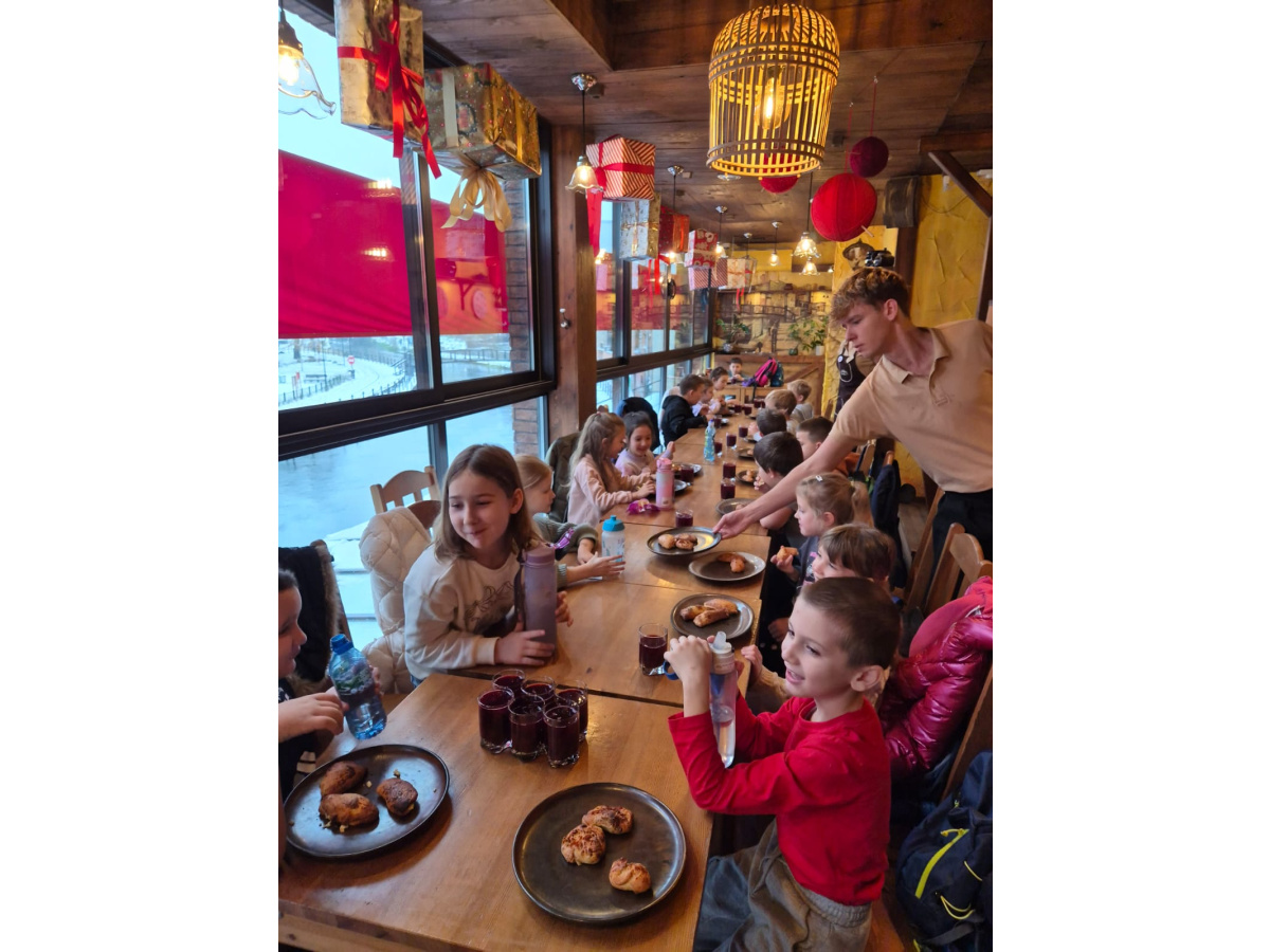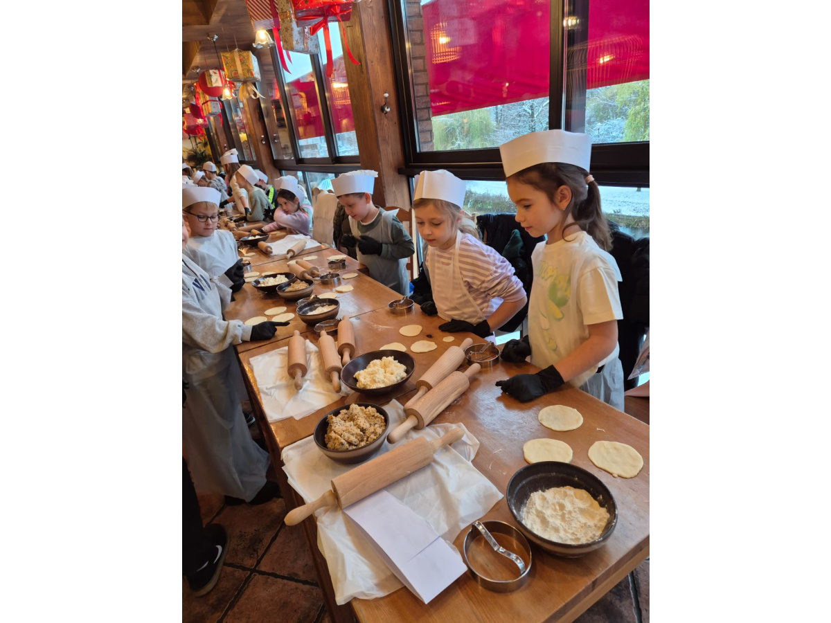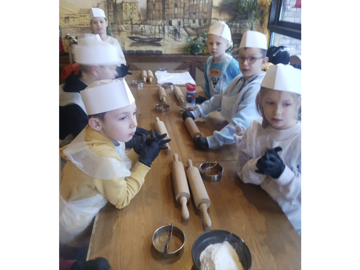 27 listopada klasy pierwsze wybrały się na wyjątkowe warsztaty kulinarne do Pierogarni Stary Młyn. Uczniowie mieli okazję poznać tajniki tradycyjnego lepienia pierogów – od przygotowania ciasta, przez formowanie farszu, aż po nadawanie im kształtu. Z wielkim zaangażowaniem i radością tworzyli własne pierogi, ucząc się cierpliwości i precyzji. Największą atrakcją było jednak wspólne kosztowanie upieczonych przysmaków, które smakowały jeszcze lepiej dzięki własnej pracy.