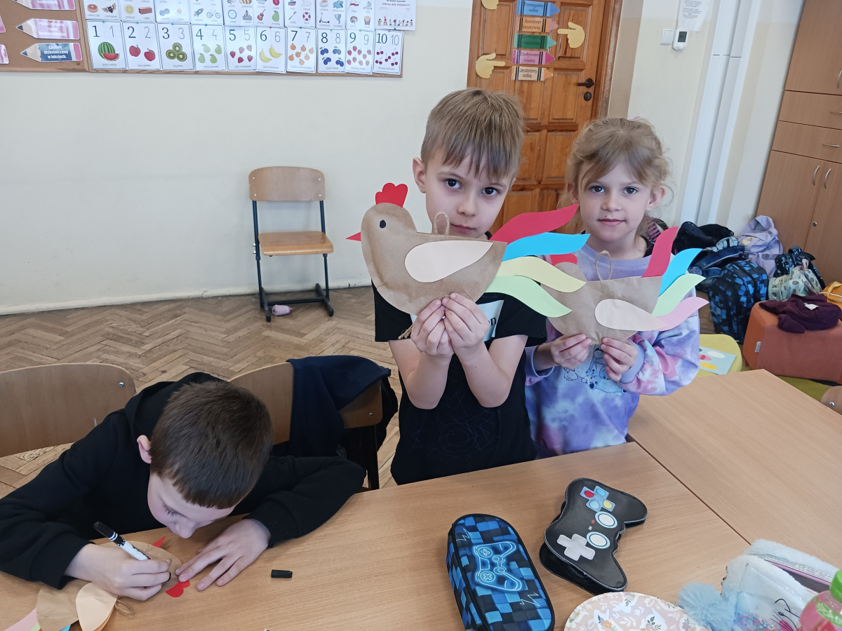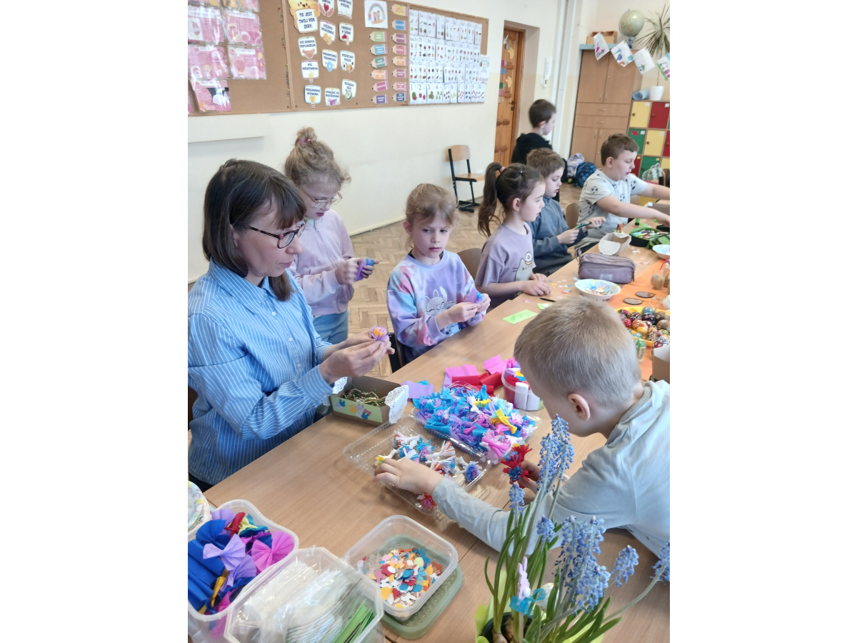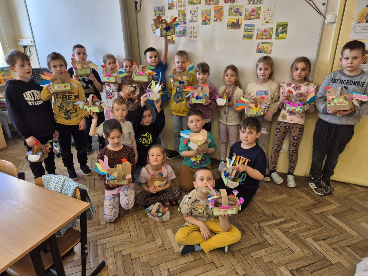 Klasy pierwsze w naszej szkole wzięły udział w twórczych warsztatach wielkanocnych. Dzieci z zaangażowaniem wykonywały kolorowe ozdoby, poznając tradycje świąteczne i rozwijając swoje umiejętności plastyczne. Wspólna praca przyniosła im wiele radości i satysfakcji, a wykonane dekoracje wprowadziły świąteczny nastrój w szkolne sale.