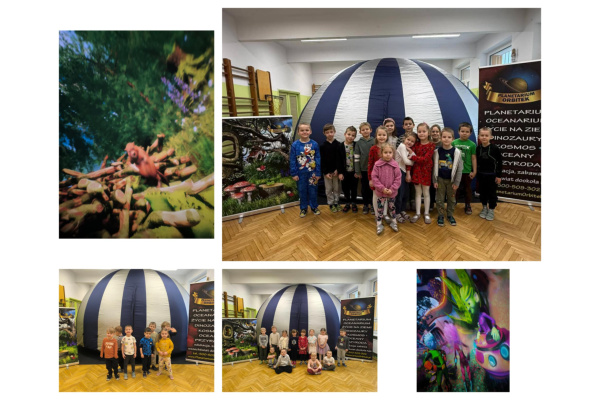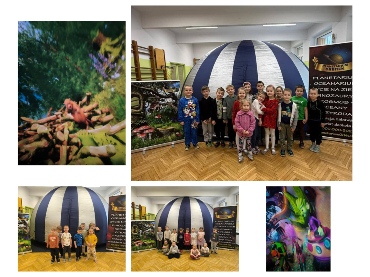Dnia 29 stycznia nasze przedszkole odwiedziło kolejny już rok Mobilne Planetarium „Orbitek”. Dzieci z wszystkich grup wiekowych miały okazję dowiedzieć się – niektóre chyba po raz pierwszy w życiu – co to jest planetarium, zobaczyć, jak wygląda i sprawdzić, co kryje się pod wielką, nadmuchiwaną kopułą. Tym razem pracownicy planetarium zabrali naszych wychowanków w niezwykłą podróż do fascynującego świata drzew w seansie edukacyjnym pt. „Życie drzew”. Był to pasjonujący film animowany, w którym dzieci mogły obserwować świat roślin z perspektywy owadów i odkryć wspaniałą magię mikrokosmosu. Podczas tej ekscytującej przygody mali widzowie zobaczyli, jak wygląda przyroda wokół nich oraz odkryli niesamowite sekrety natury. Na zakończenie spotkania nie zabrakło oczywiście pamiątkowego zdjęcia z naturą w roli głównej. Emocjonujący pokaz Mobilnego Planetarium „Orbitek” dostarczył dzieciom niezapomnianych wrażeń na bardzo długo! Było pouczająco i super atrakcyjnie!