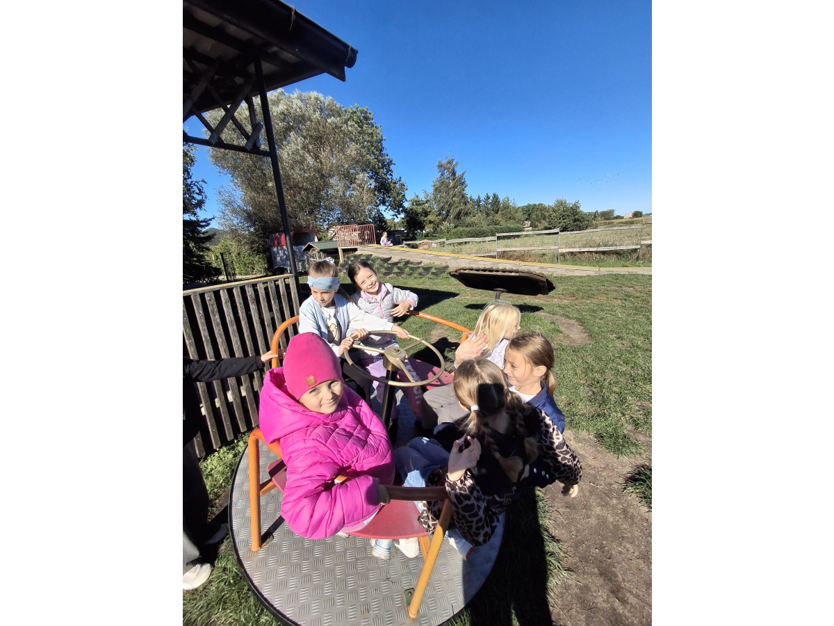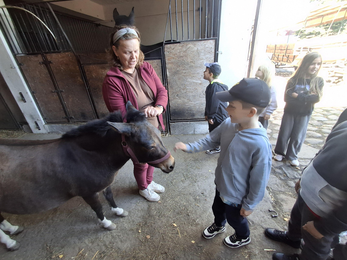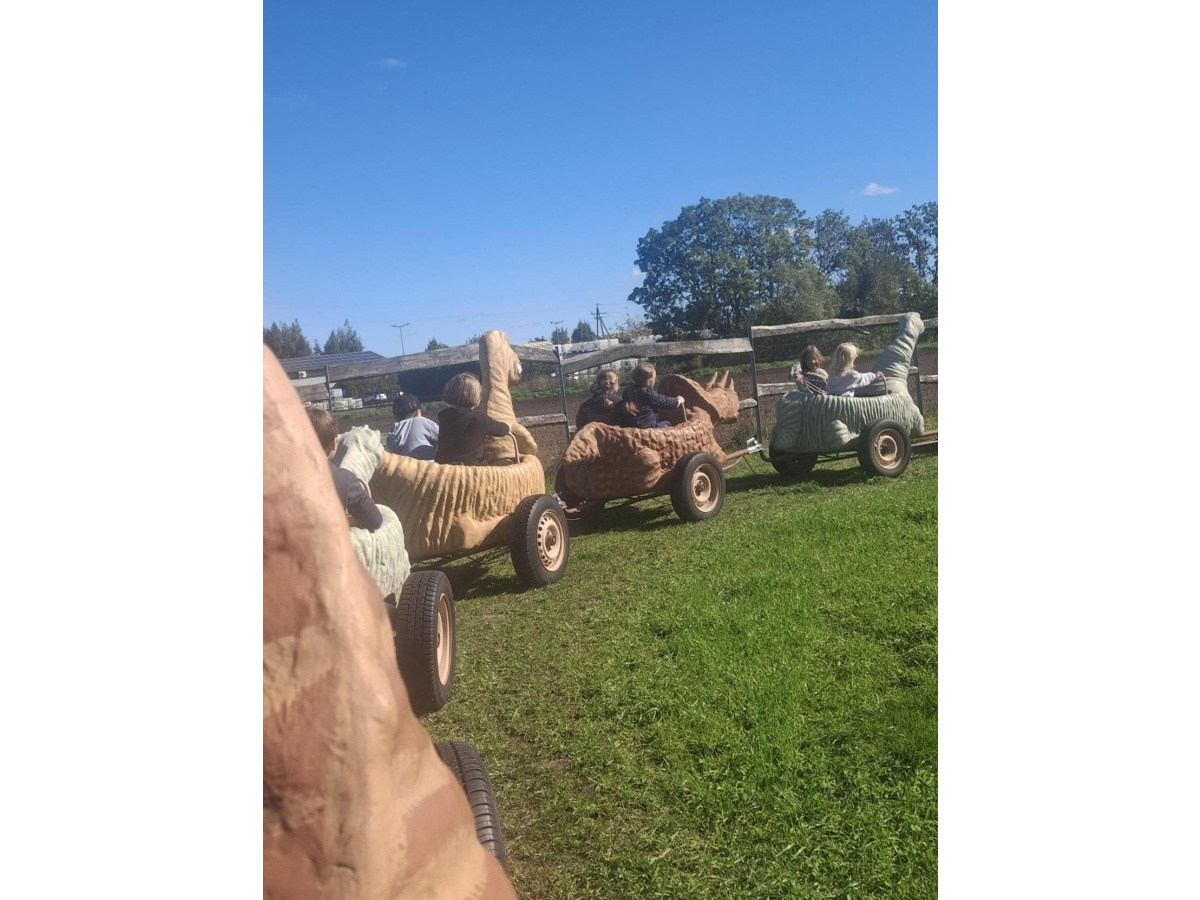 24 września uczniowie klasy 2 a wybrali się wraz z nauczycielkami do gospodarstwa w pobliżu Torunia. Podczas wycieczki pod nadzorem gospodarzy uczniowie mogli karmić zwierzęta: konie, kozy, osła, owce i lamy. Mieliśmy możliwość przejazdu kolejką dinozaurów w terenie. W trakcie wycieczki dzieci korzystały z ciekawego placu zabaw, na którym czekało na uczniów wiele niespodzianek. Zwiedziliśmy stare, zabytkowe powozy konne: karety, bryczki i sanie. Na zakończenie wycieczki dzieci zajadały się pysznymi kiełbaskami z grilla oraz ziemniakami z ogniska. Na miejscu towarzyszyła nam miła atmosfera, niezapomniane wrażenia i dużo radosnej zabawy na świeżym powietrzu.