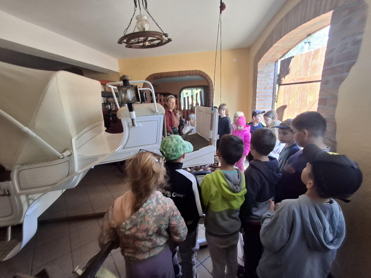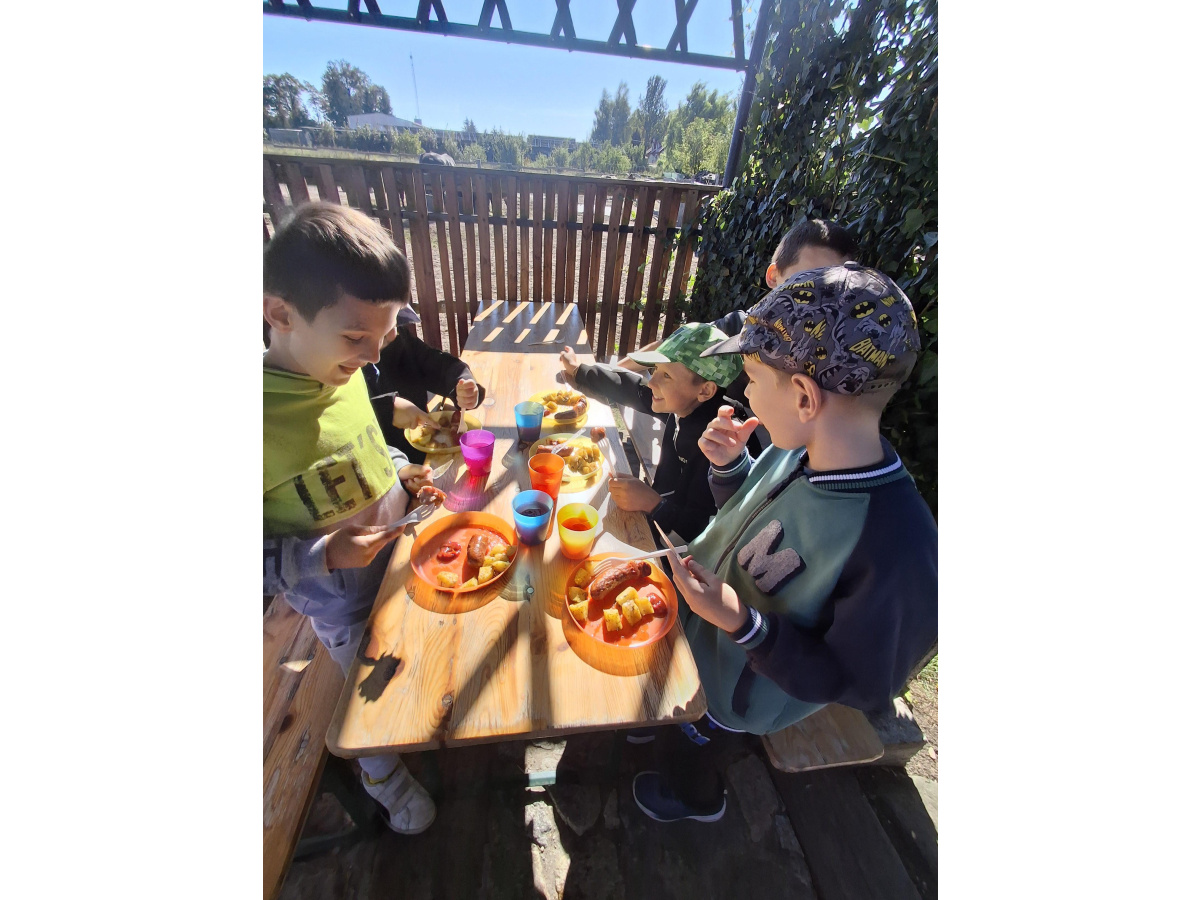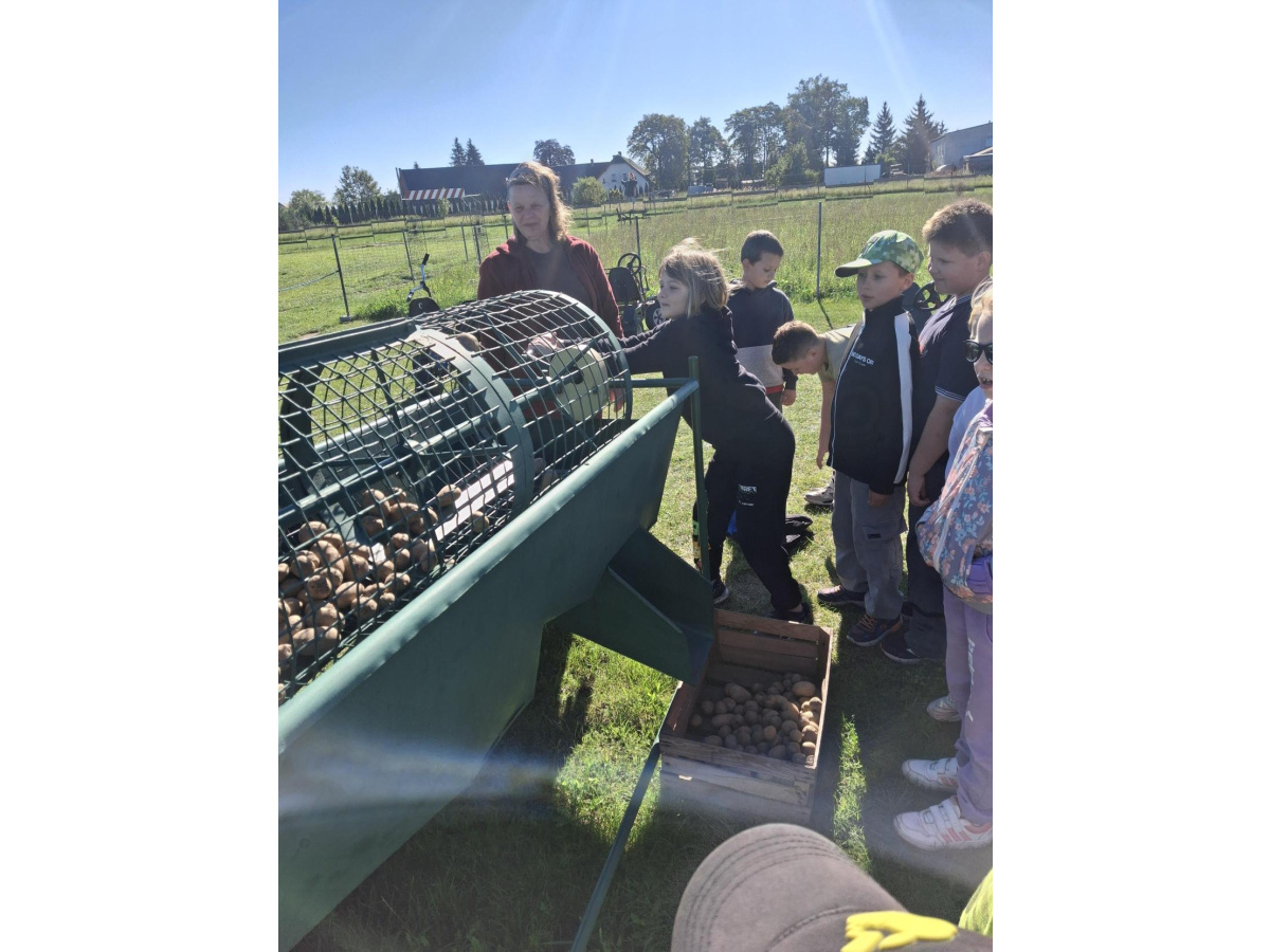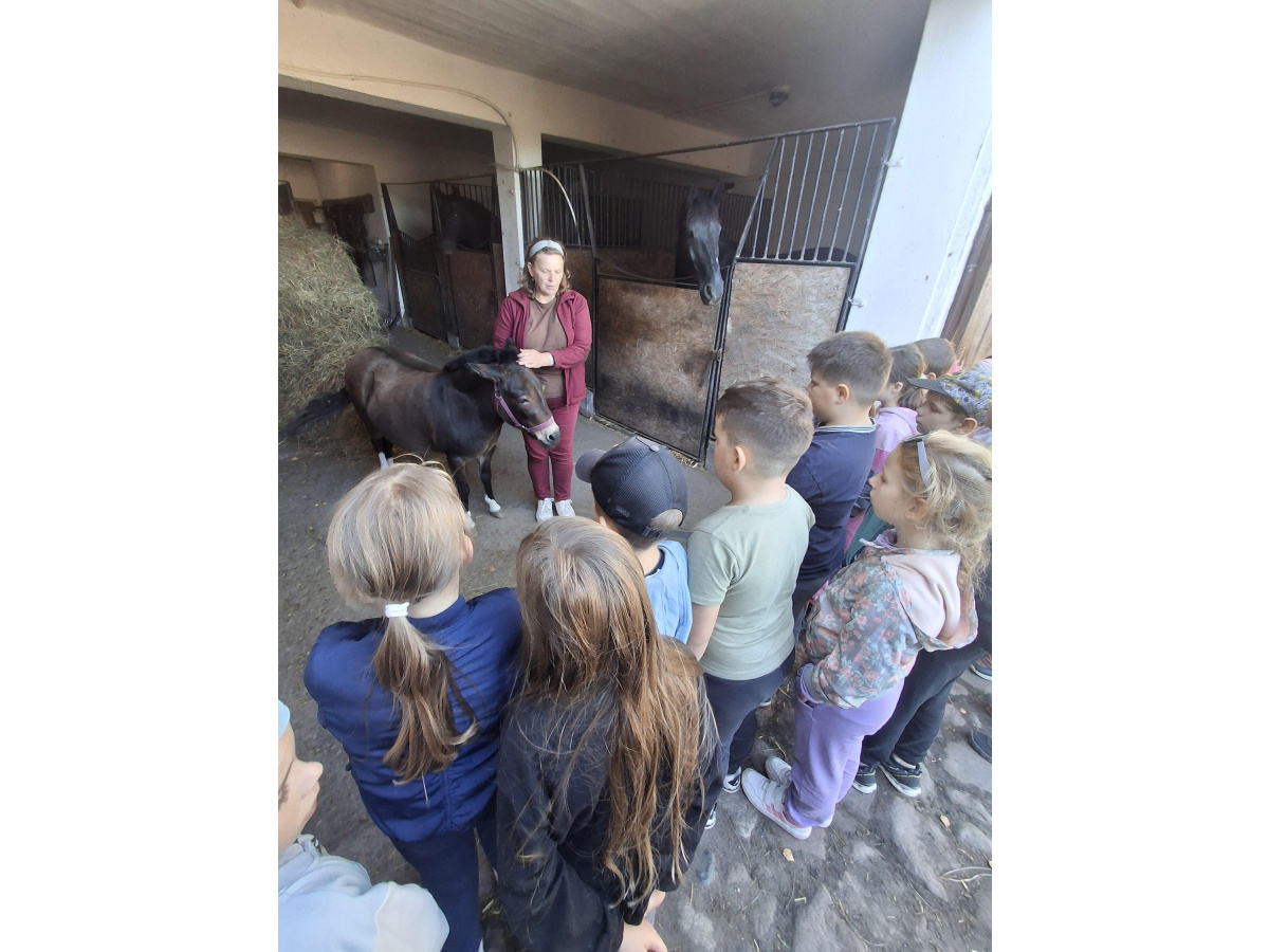 24 września uczniowie klasy 2 a wybrali się wraz z nauczycielkami do gospodarstwa w pobliżu Torunia. Podczas wycieczki pod nadzorem gospodarzy uczniowie mogli karmić zwierzęta: konie, kozy, osła, owce i lamy. Mieliśmy możliwość przejazdu kolejką dinozaurów w terenie. W trakcie wycieczki dzieci korzystały z ciekawego placu zabaw, na którym czekało na uczniów wiele niespodzianek. Zwiedziliśmy stare, zabytkowe powozy konne: karety, bryczki i sanie. Na zakończenie wycieczki dzieci zajadały się pysznymi kiełbaskami z grilla oraz ziemniakami z ogniska. Na miejscu towarzyszyła nam miła atmosfera, niezapomniane wrażenia i dużo radosnej zabawy na świeżym powietrzu.