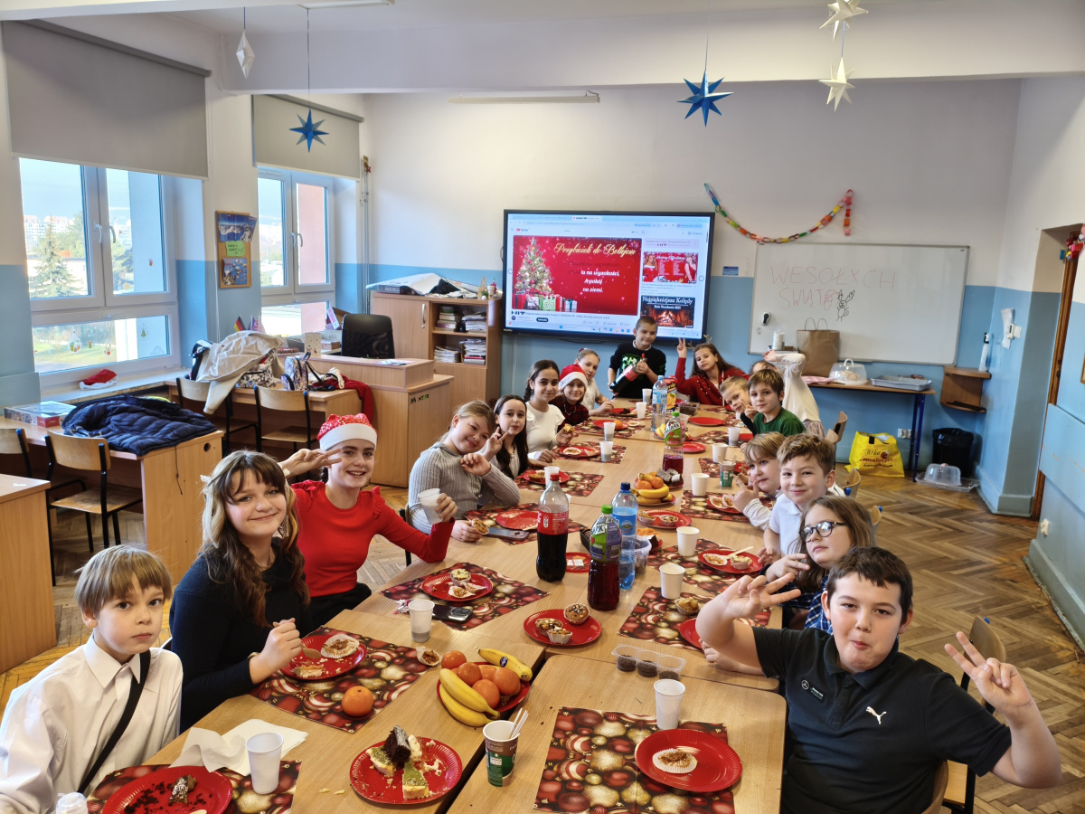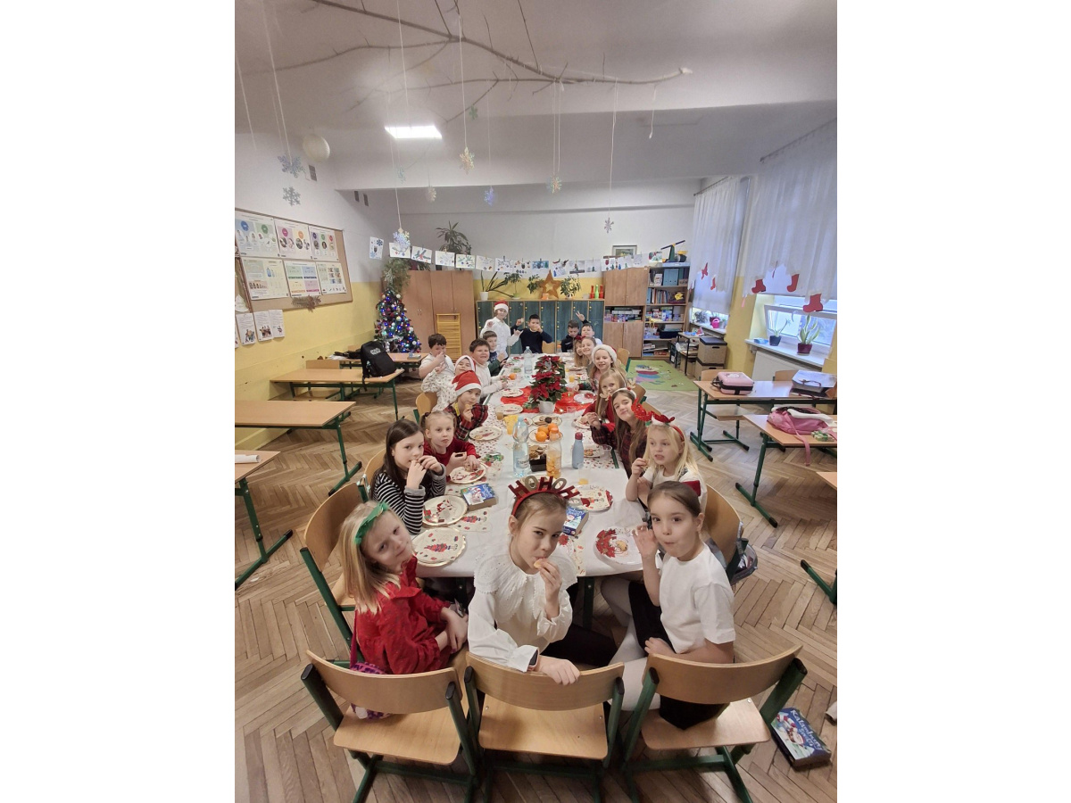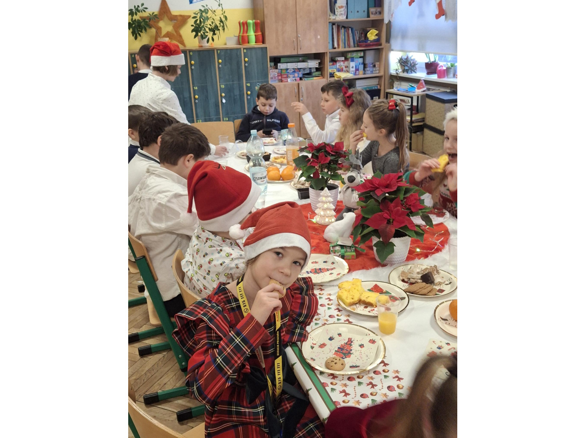W piątek, 19 grudnia, wszyscy uczniowie i nauczyciele spotkali się w sali gimnastycznej, aby wziąć udział w tradycyjnych jasełkach, przygotowanych w tym roku przez panie: Anetę Jordan-Madejską, Monikę Molską i Magdalenę Górską. Było wesoło, śpiewnie, nie zabrakło też oczywiście odrobiny refleksji. Po wspólnym śpiewaniu kolęd rozstrzygnęliśmy jeszcze szkolne konkursy związane z Bożym Narodzeniem. Po jasełkach udaliśmy się do swoich klas na wigilie klasowe, aby połamać się opłatkiem, złożyć życzenia i wspólnie spędzić czas. W każdej sali było radośnie, smacznie i bardzo świątecznie. Dzieci wręczały sobie upominki. Dziękujemy za ten wspaniały czas!